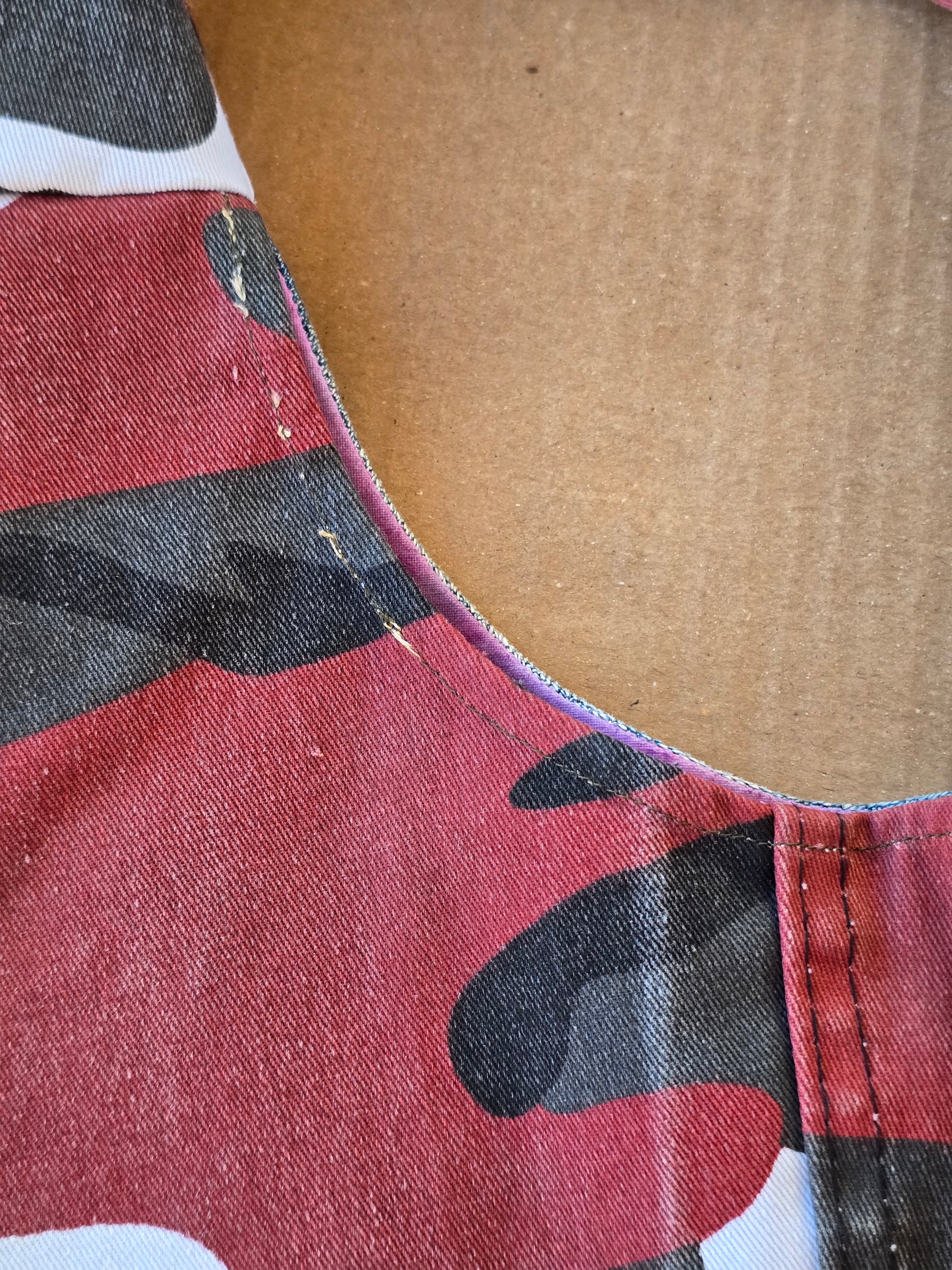 Handmade using reclaimed denim and camouflage fabric sourced from a broken pair of jeans and cargo pants.