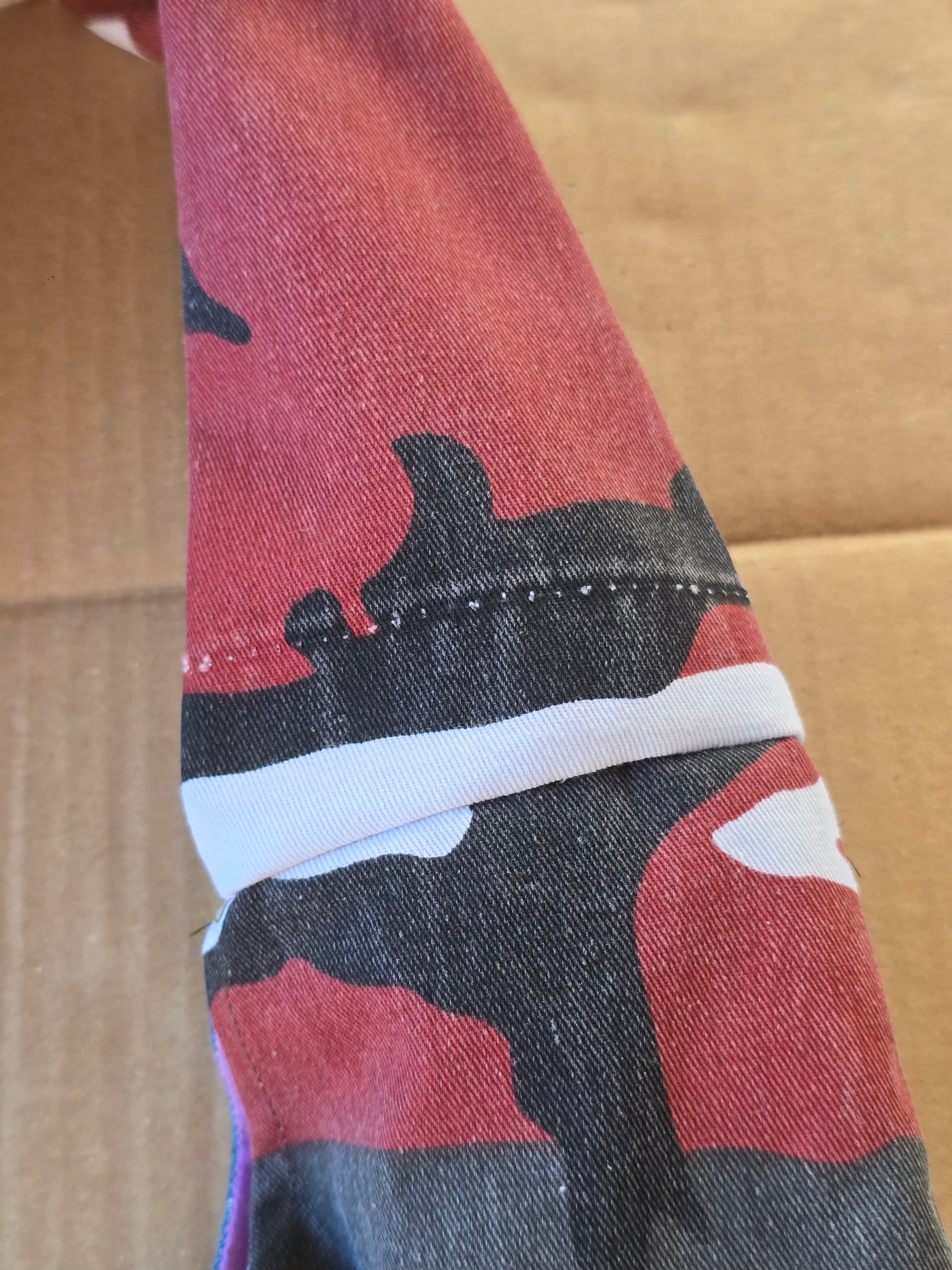 - Materials: reclaimed denim, cargo camouflage fabric, hand-dyed 1960s military bedsheet