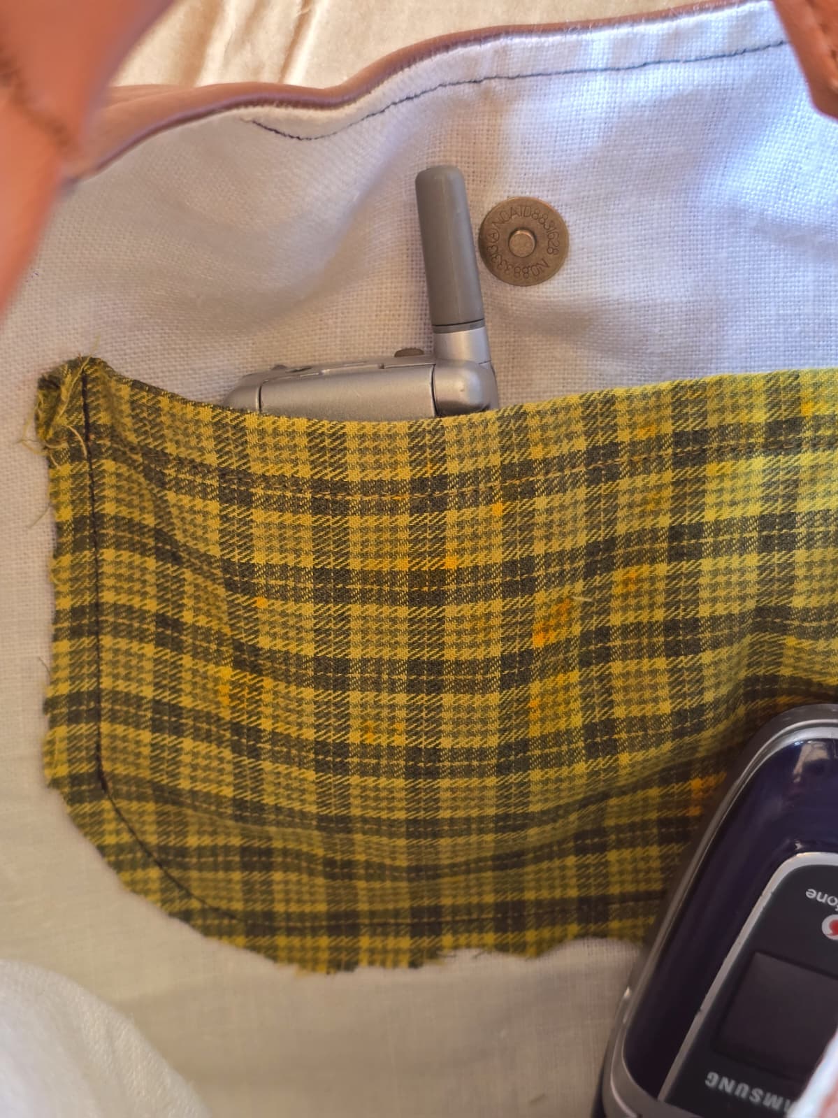- Interior: fully lined, inner pocket in hand‑dyed cotton