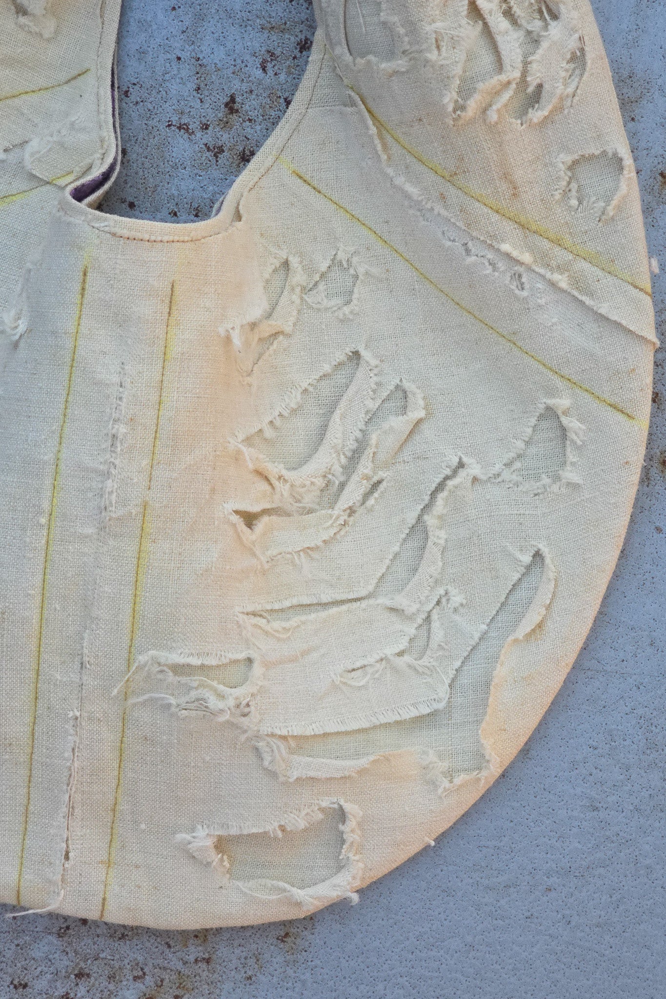 The inner lining is made from repurposed cotton scraps and also tie-dyed, with a magnetic button closure.