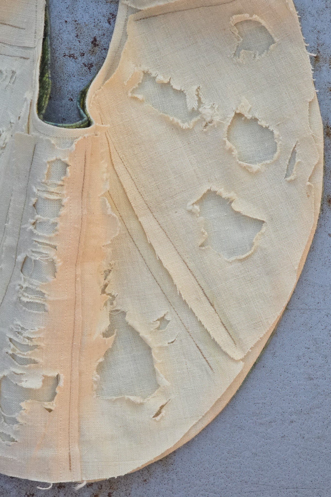 The inner lining is made from repurposed cotton scraps and also tie-dyed, with a magnetic button closure.