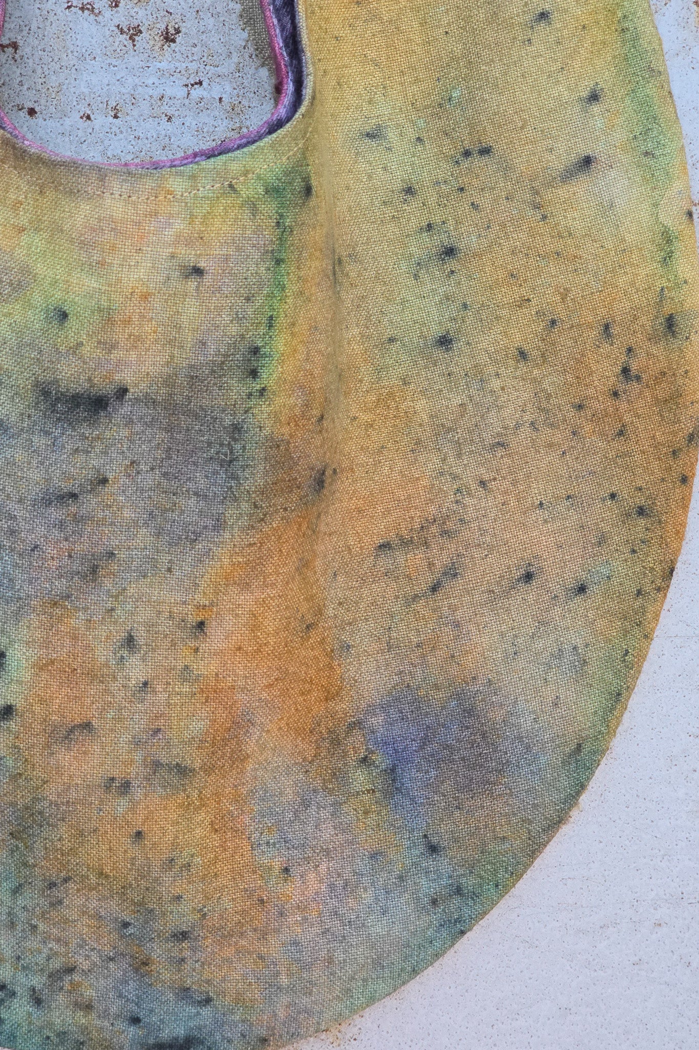 The inner lining is made from repurposed cotton scraps and also tie-dyed, with a magnetic button closure.