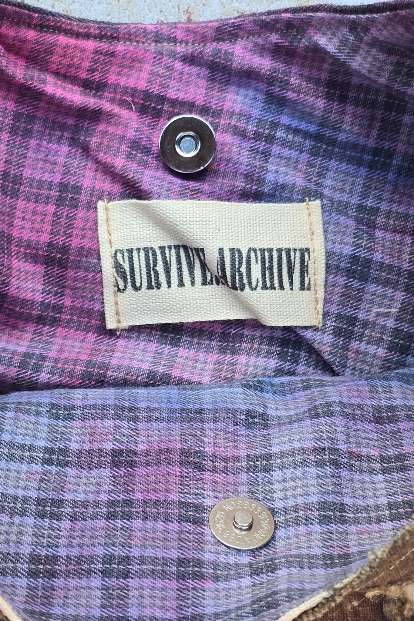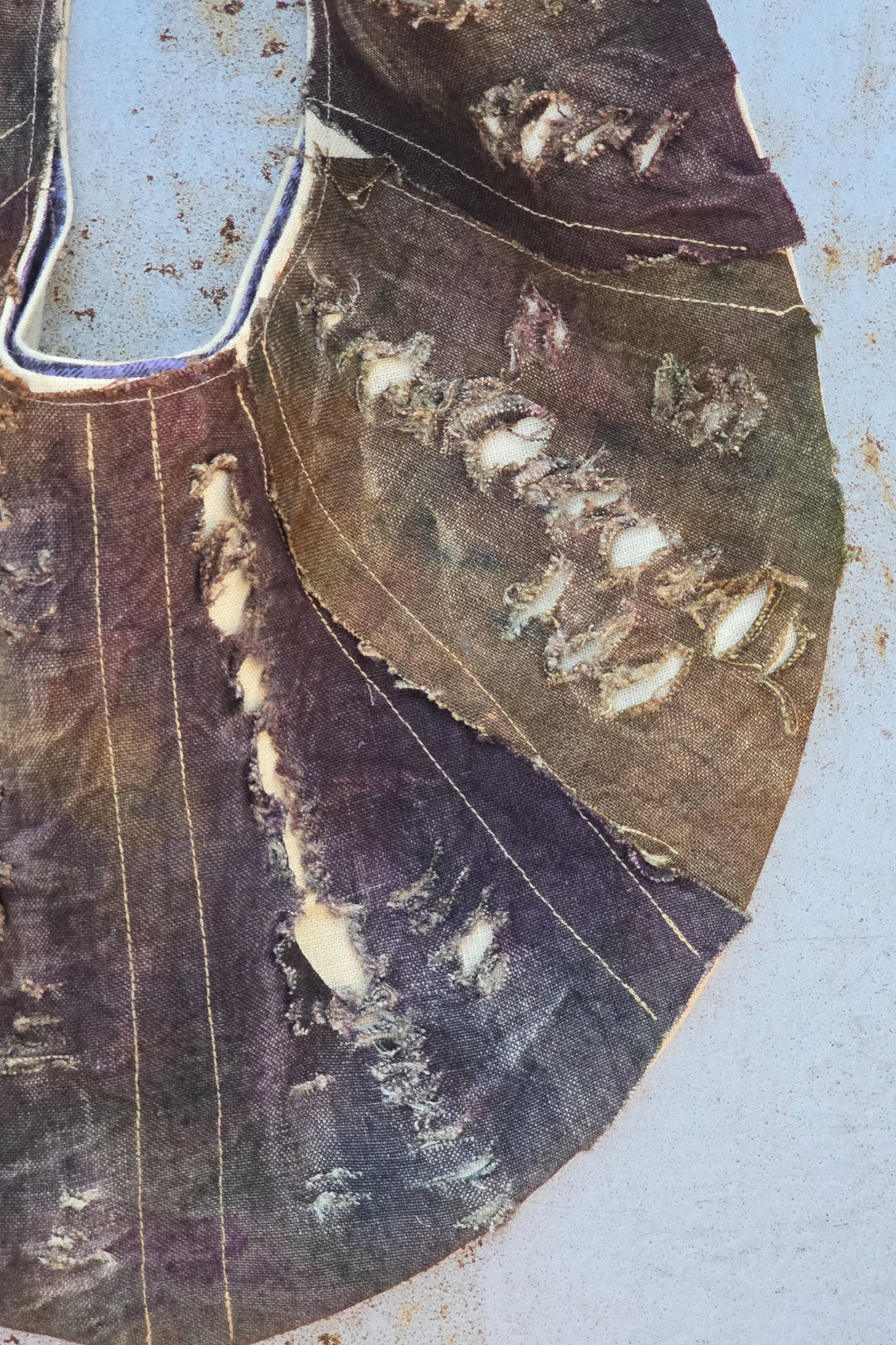 The inner lining is made from repurposed cotton scraps and also tie-dyed, with a magnetic button closure.