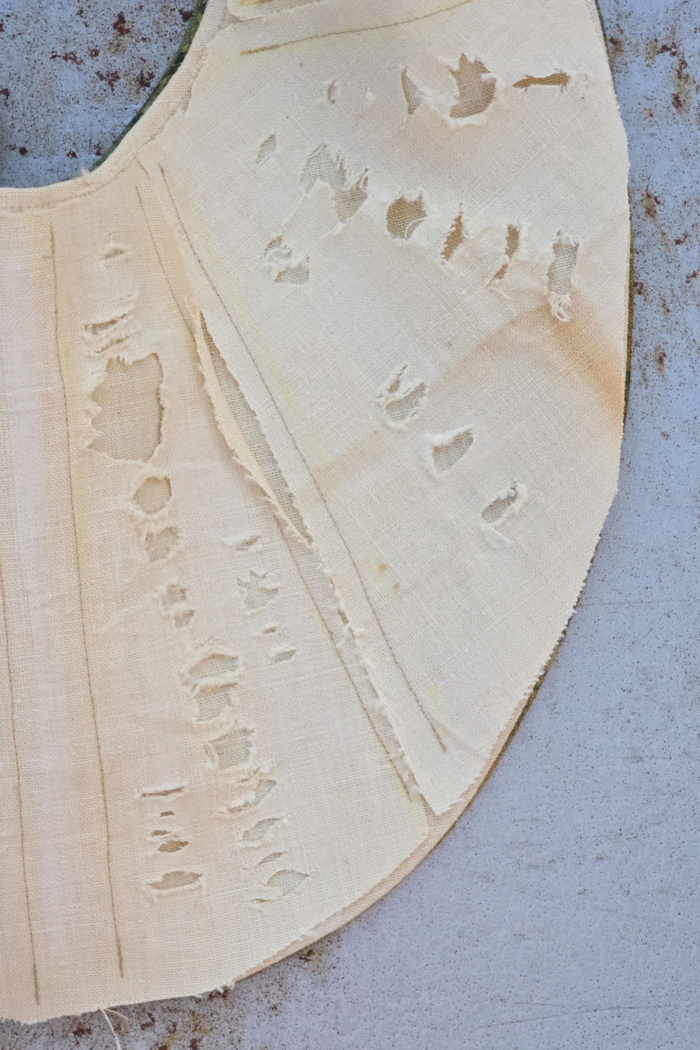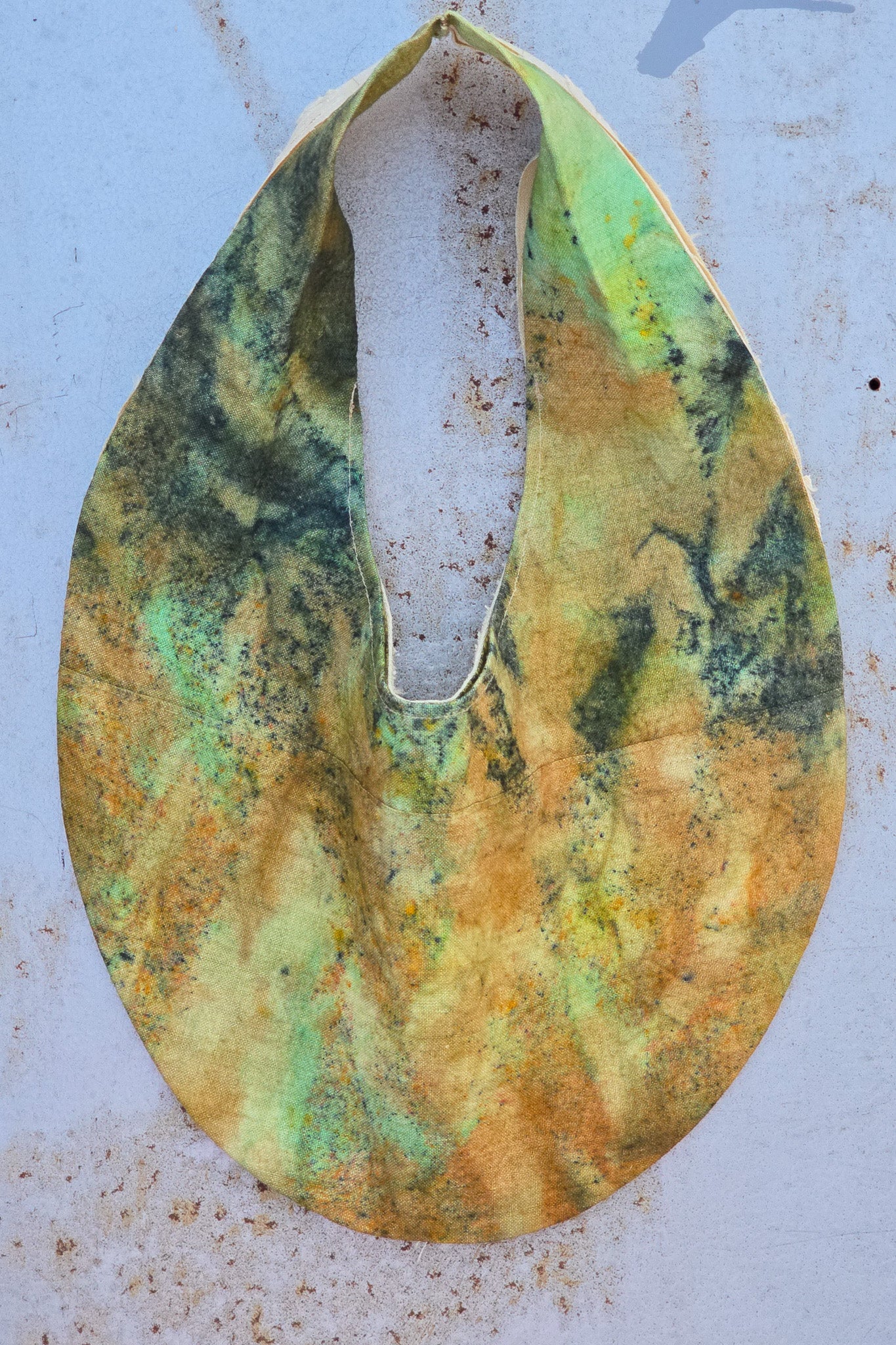 The inner lining is made from repurposed cotton scraps and also tie-dyed, with a magnetic button closure.