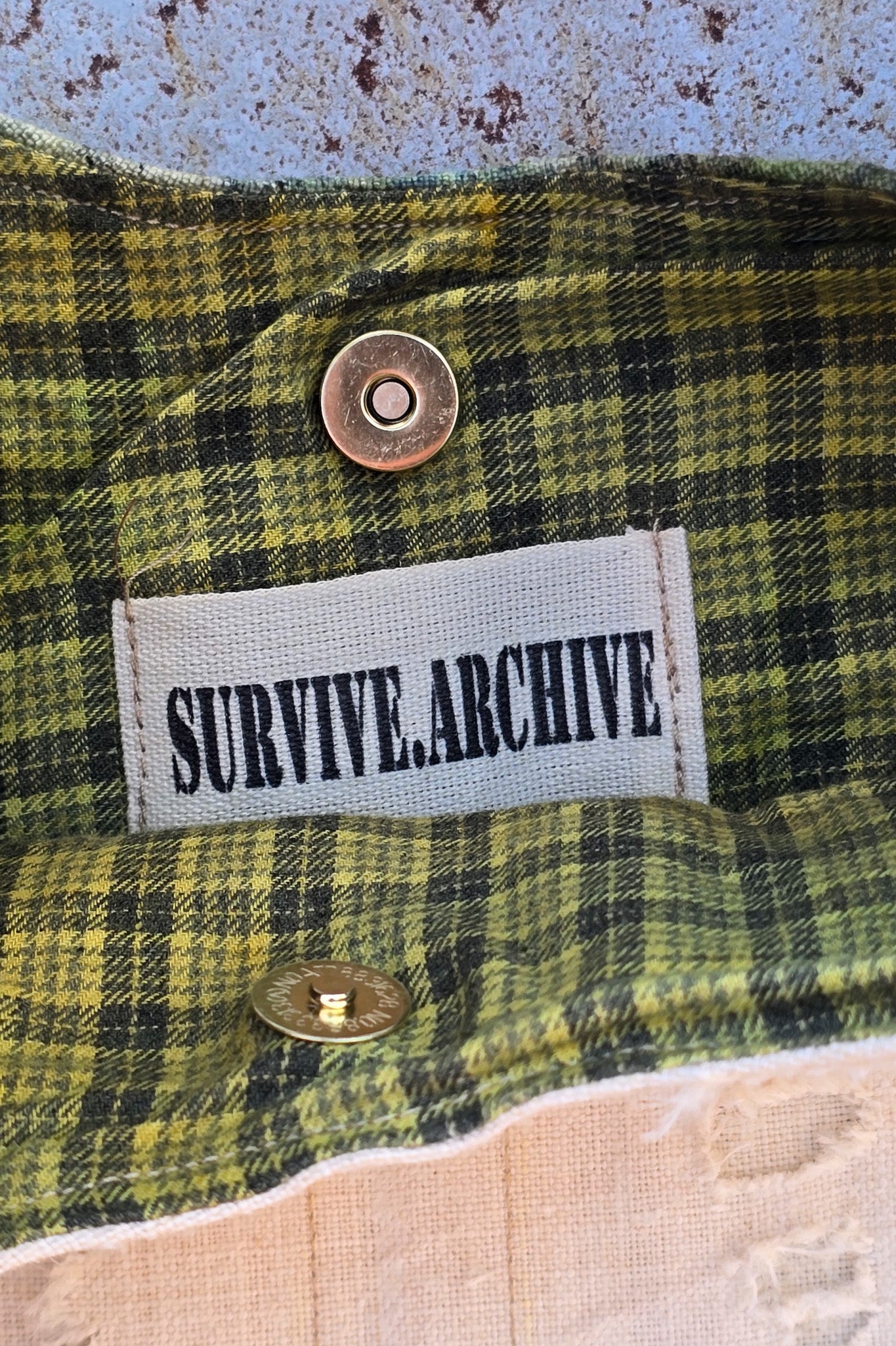 One-of-one hobo bag, handmade in Italy from original 1961 military canvas. Each bag has a clean side and one with a distressed panel, crafted from production scraps of the same fabric. Some feature a unique tie-dye treatment.