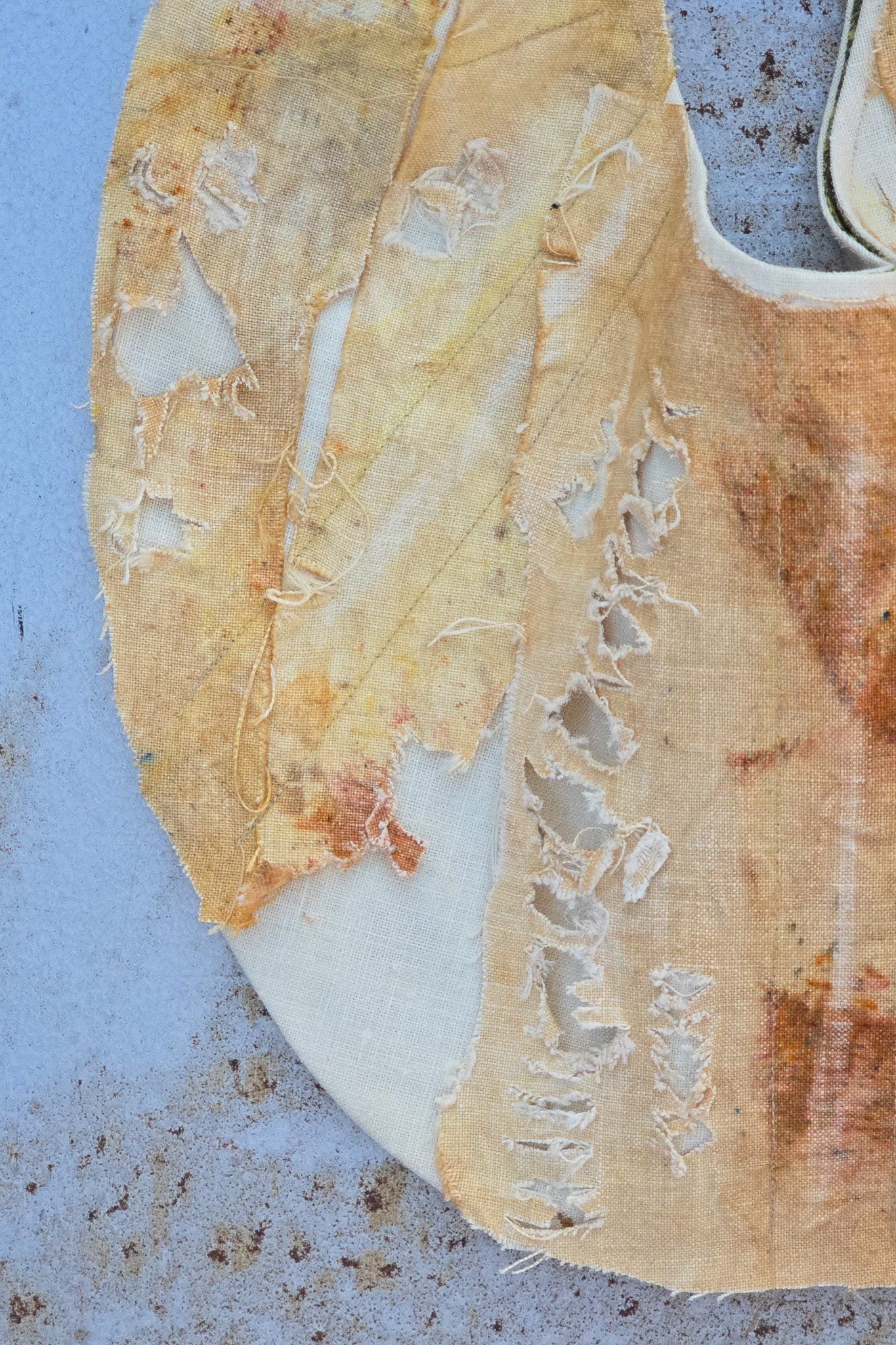 The inner lining is made from repurposed cotton scraps and also tie-dyed, with a magnetic button closure.