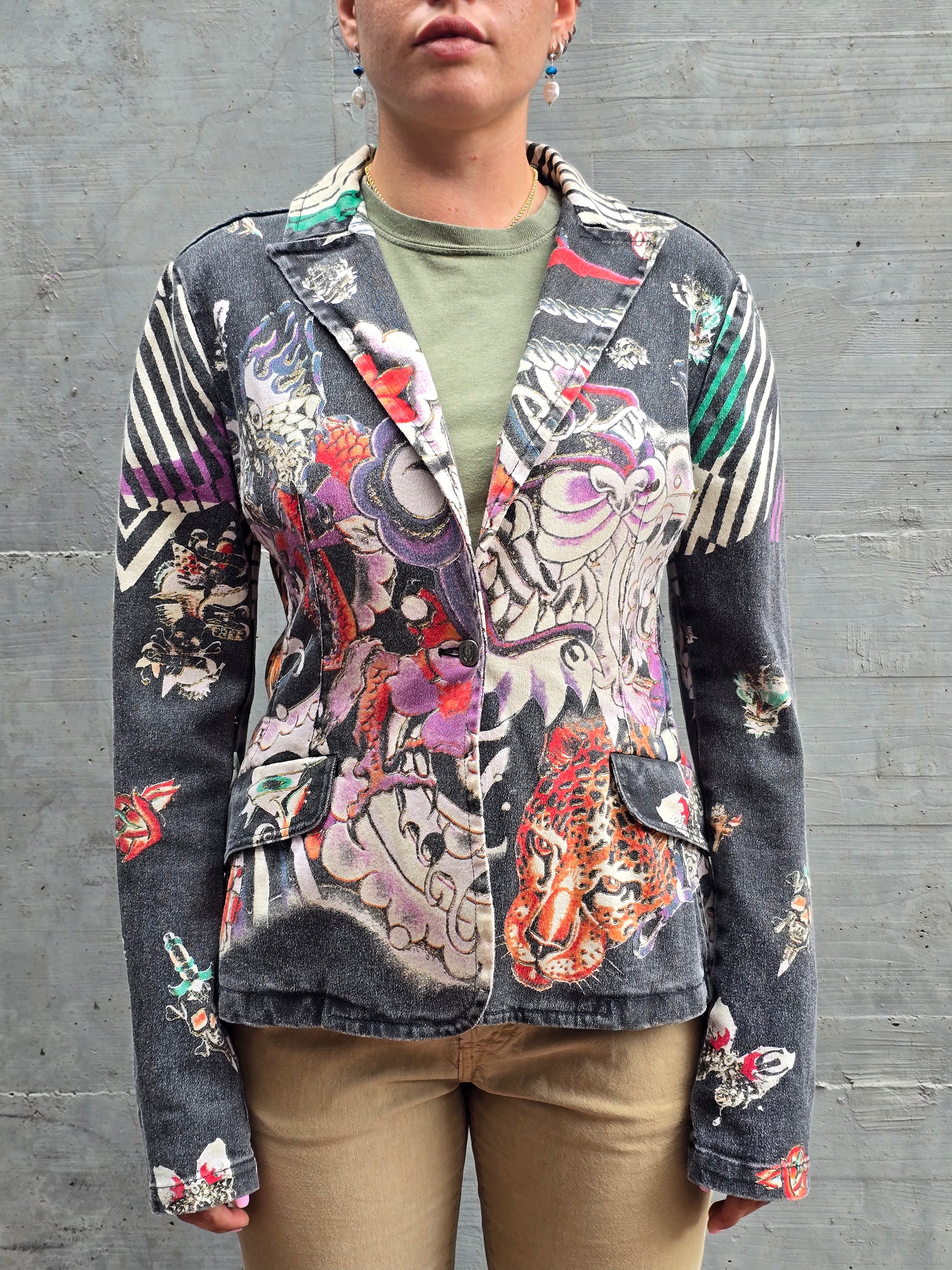 Just Cavalli Tattoo-Print Blazer – Early 2000s, Size S